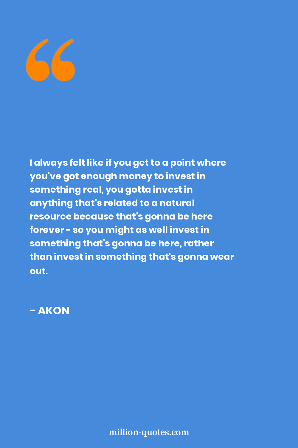 I always felt like if you get to a point where you've got enough money to invest in something real, you gotta invest in anything that's related to a natural resource because that's gonna be here forever - so you might as well invest in something that's gonna be here, rather than invest in something that's gonna wear out.