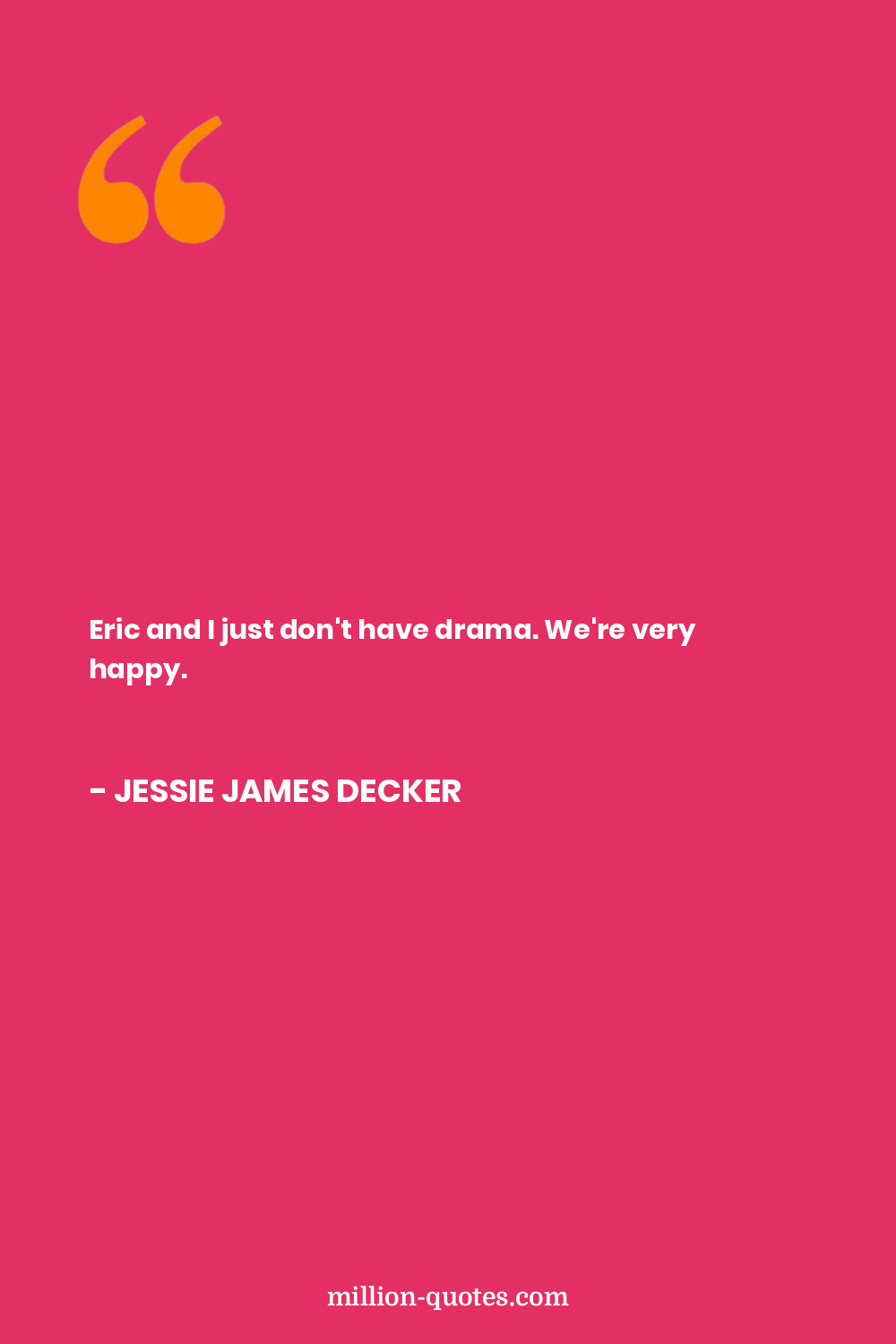 Eric and I just don't have drama. We're very happy.