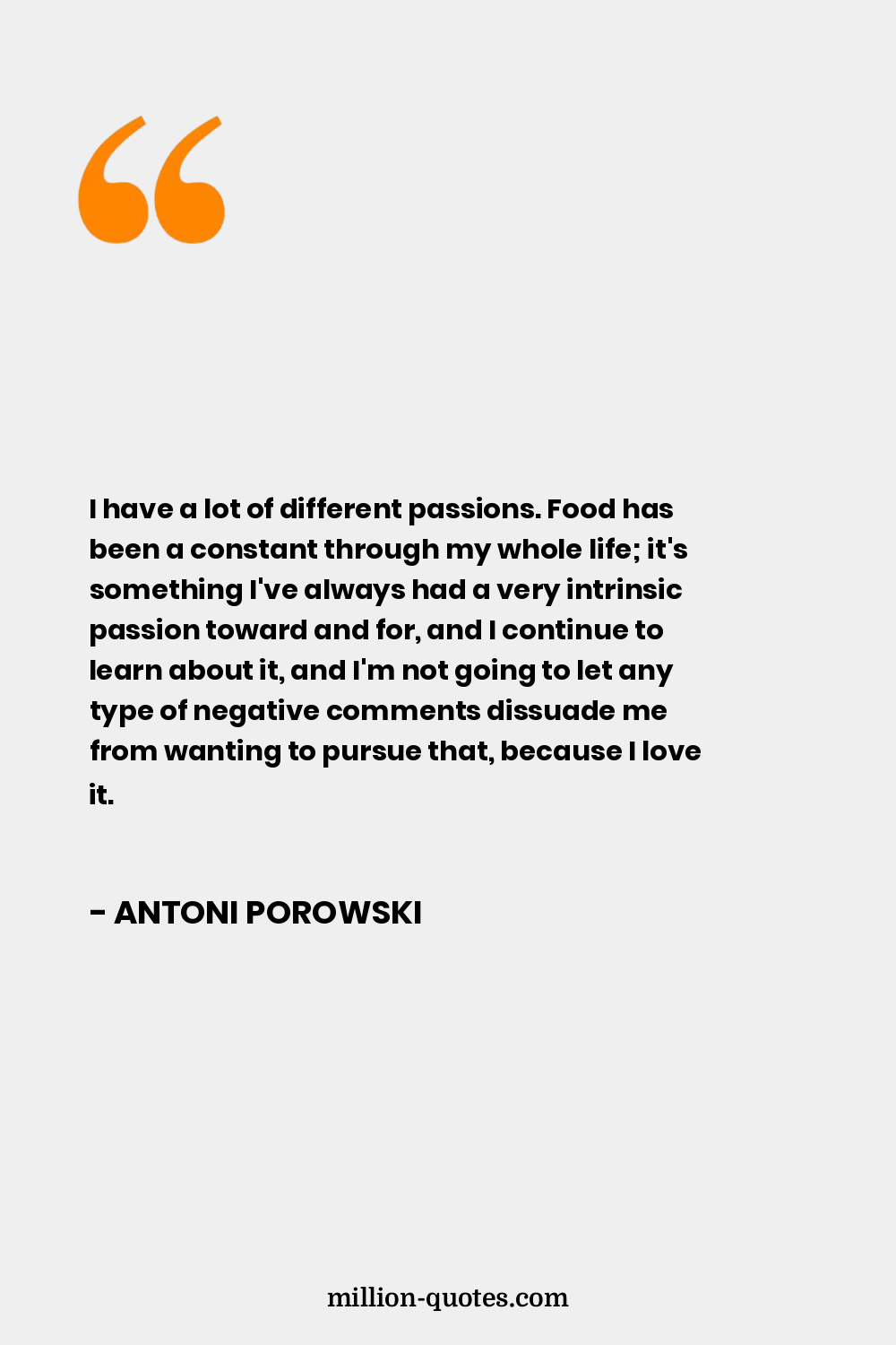 I have a lot of different passions. Food has been a constant through my whole life; it's something I've always had a very intrinsic passion toward and for, and I continue to learn about it, and I'm not going to let any type of negative comments dissuade me from wanting to pursue that, because I love it.