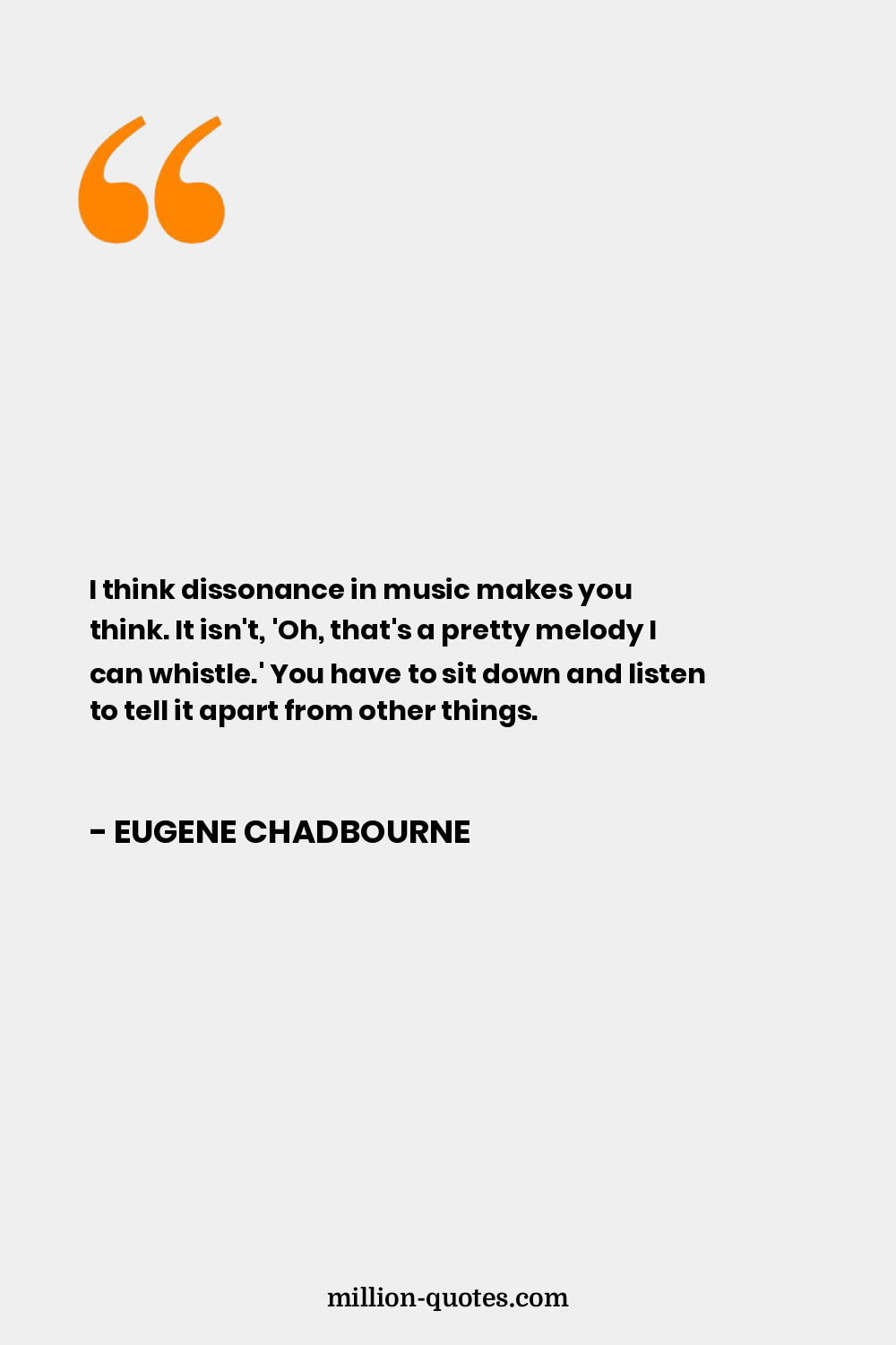 I think dissonance in music makes you think. It isn't, 'Oh, that's a pretty melody I can whistle.' You have to sit down and listen to tell it apart from other things.