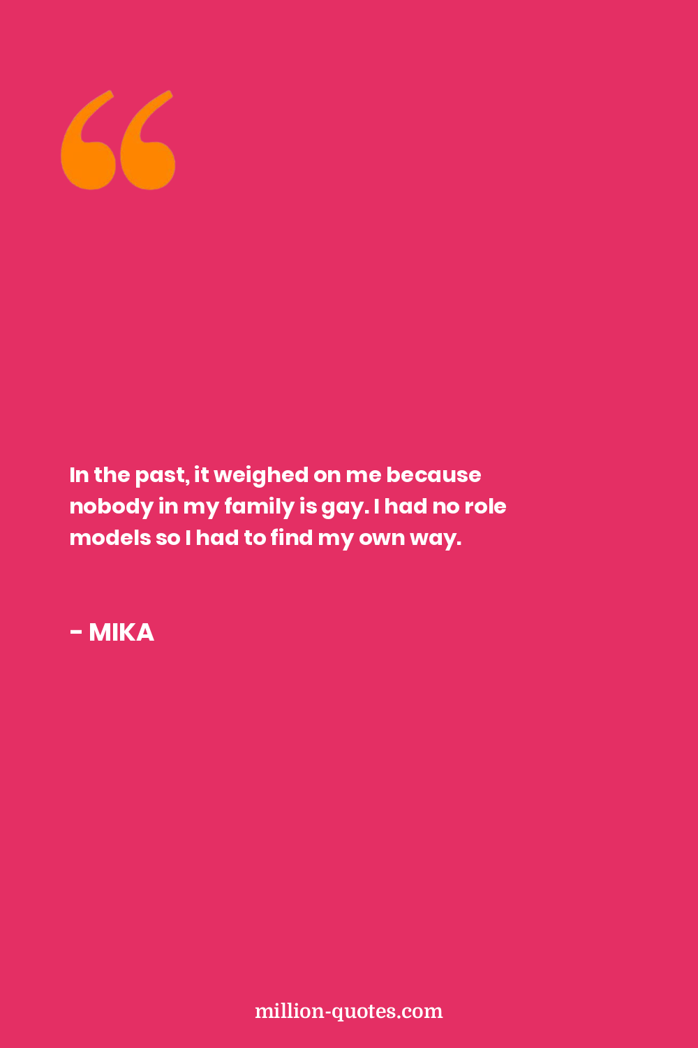 In the past, it weighed on me because nobody in my family is gay. I had no role models so I had to find my own way.