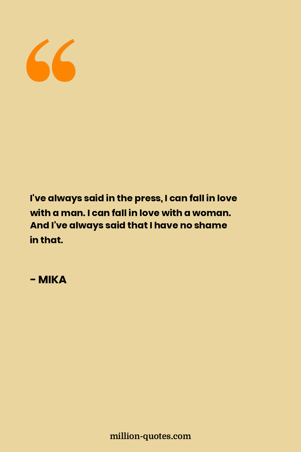 I've always said in the press, I can fall in love with a man. I can fall in love with a woman. And I've always said that I have no shame in that.