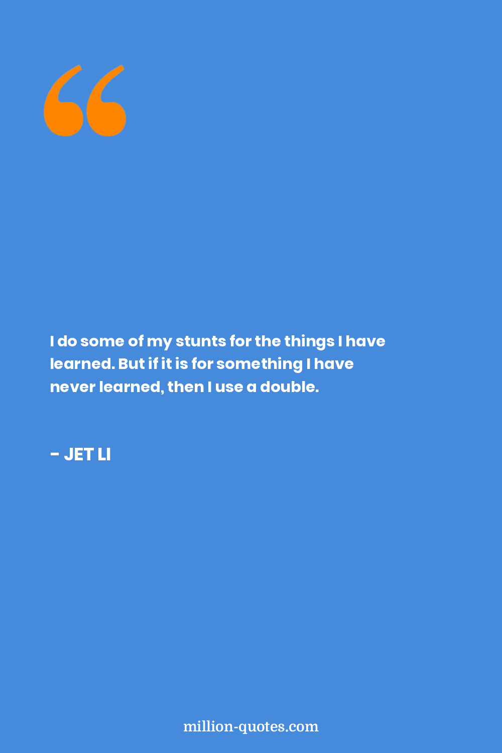 I do some of my stunts for the things I have learned. But if it is for something I have never learned, then I use a double.