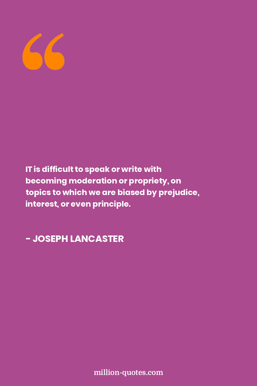 IT is difficult to speak or write with becoming moderation or propriety, on topics to which we are biased by prejudice, interest, or even principle.