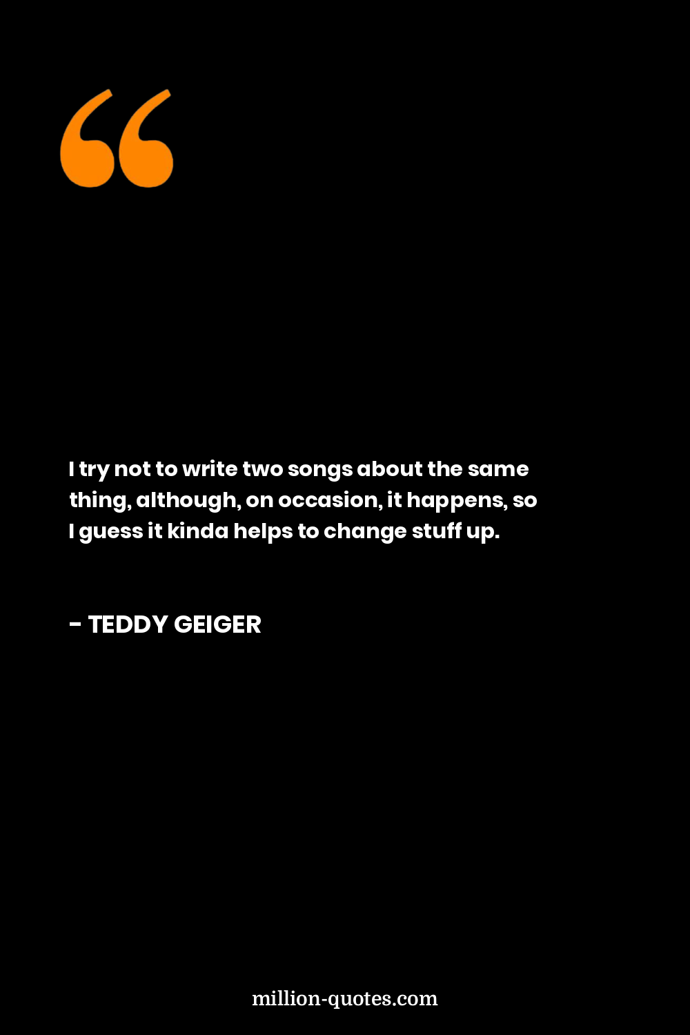 I try not to write two songs about the same thing, although, on occasion, it happens, so I guess it kinda helps to change stuff up.