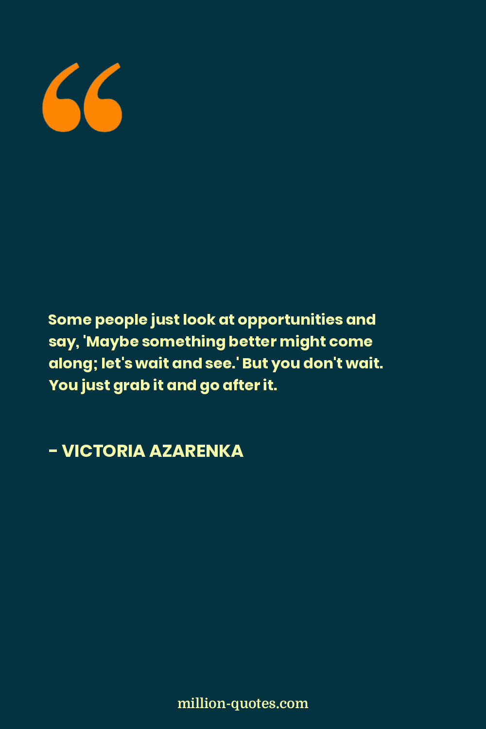 Some people just look at opportunities and say, 'Maybe something better might come along; let's wait and see.' But you don't wait. You just grab it and go after it.