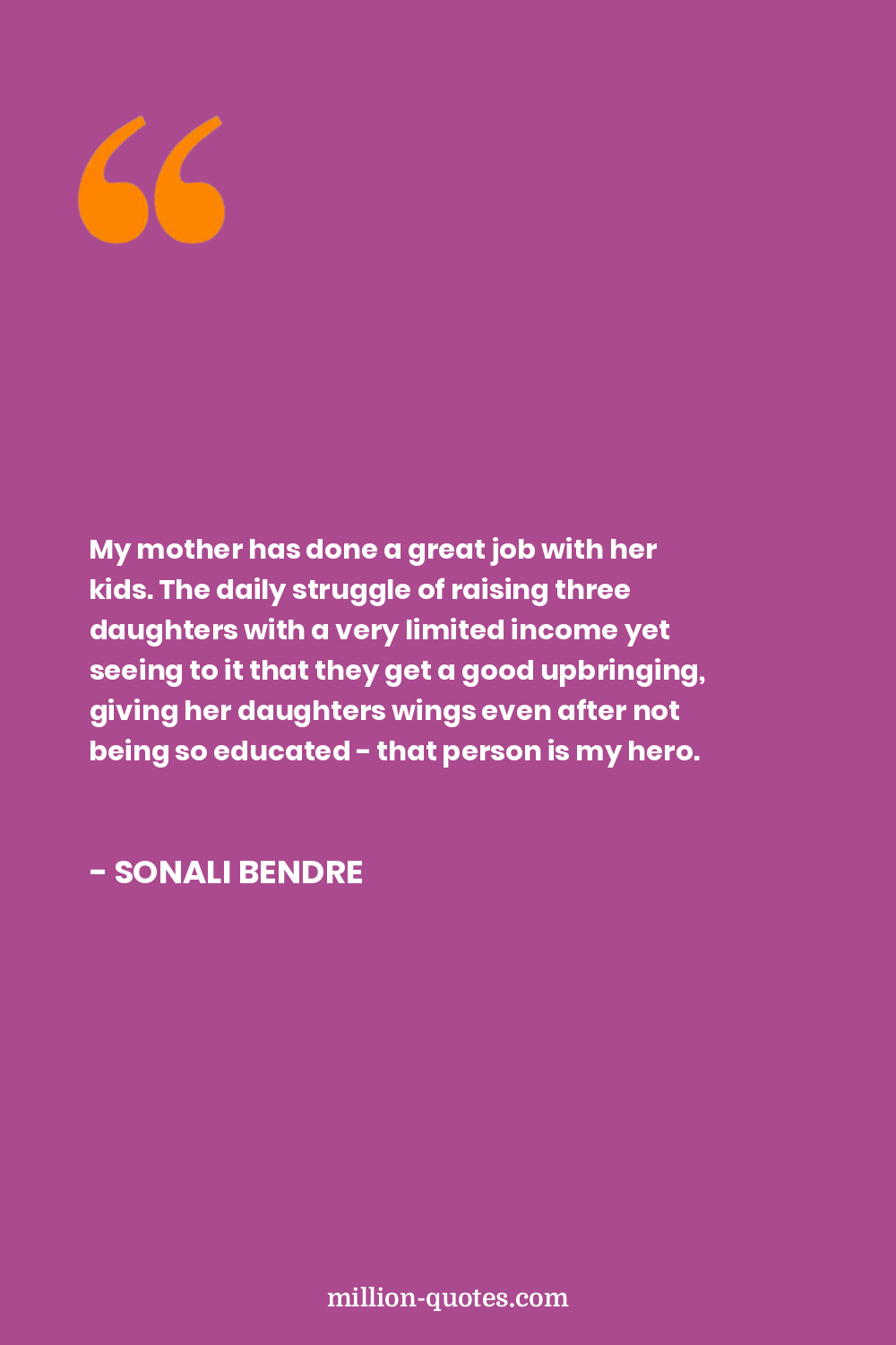 My mother has done a great job with her kids. The daily struggle of raising three daughters with a very limited income yet seeing to it that they get a good upbringing, giving her daughters wings even after not being so educated - that person is my hero.