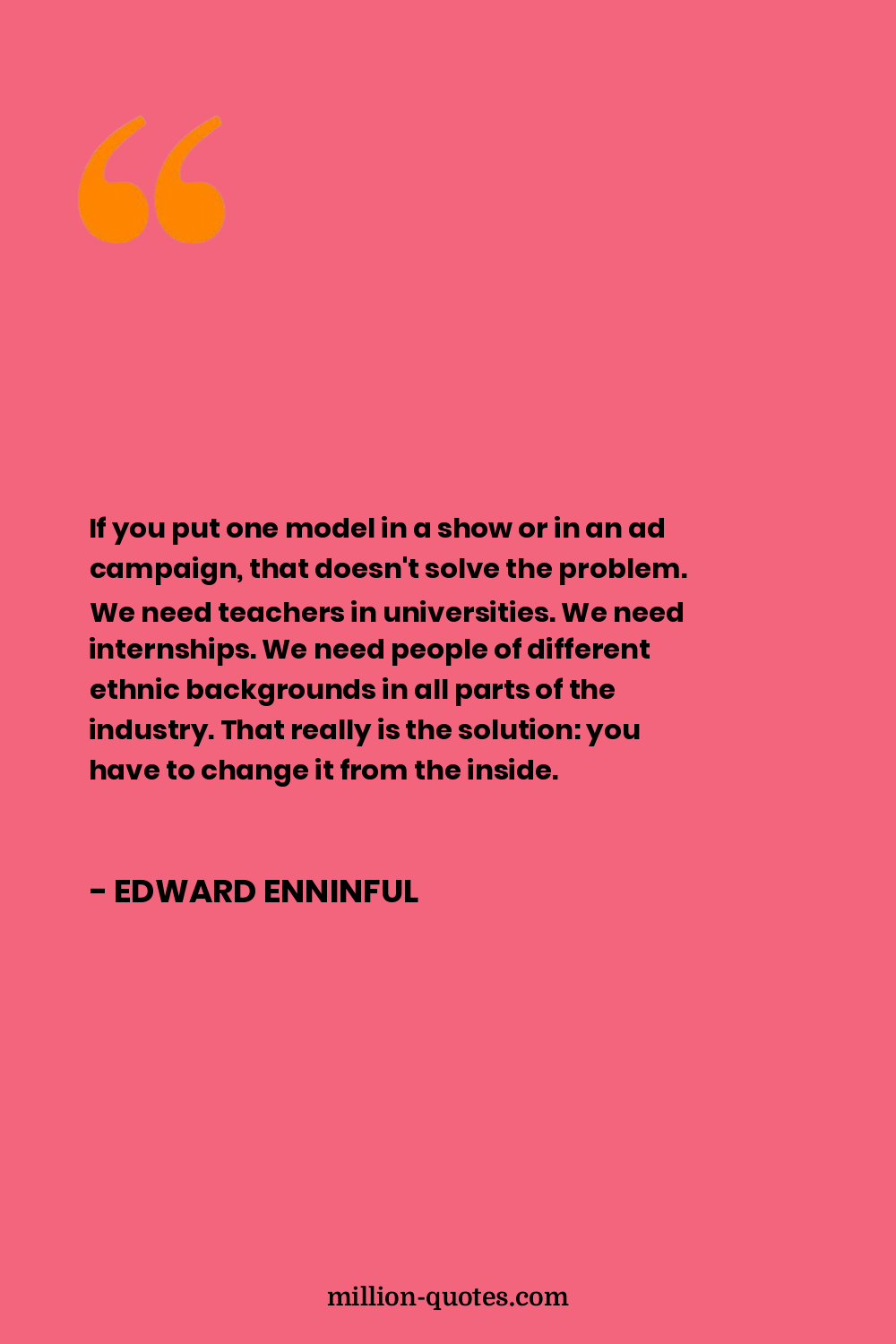 If you put one model in a show or in an ad campaign, that doesn't solve the problem. We need teachers in universities. We need internships. We need people of different ethnic backgrounds in all parts of the industry. That really is the solution: you have to change it from the inside.