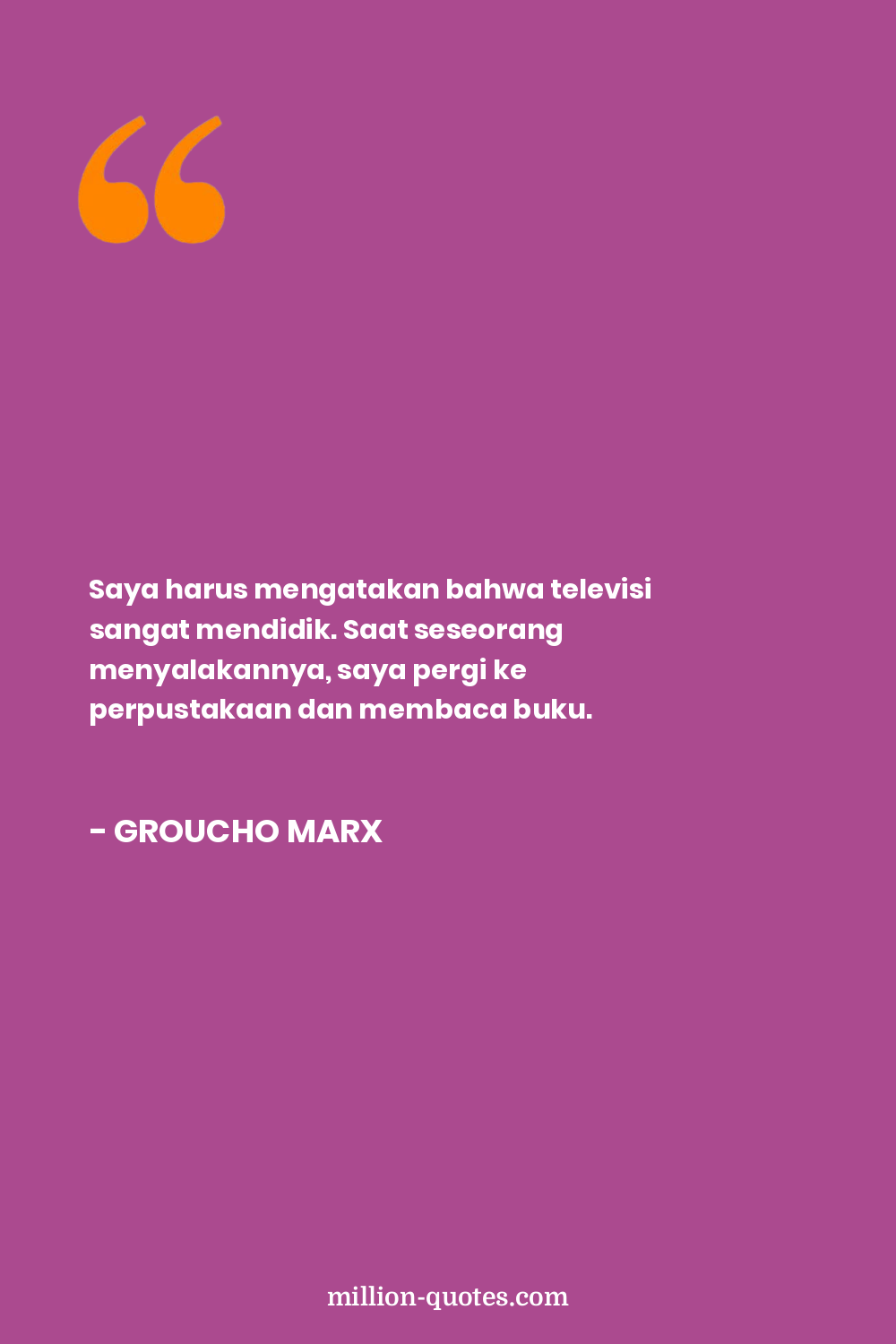 Saya harus mengatakan bahwa televisi sangat mendidik. Saat seseorang menyalakannya, saya pergi ke perpustakaan dan membaca buku.