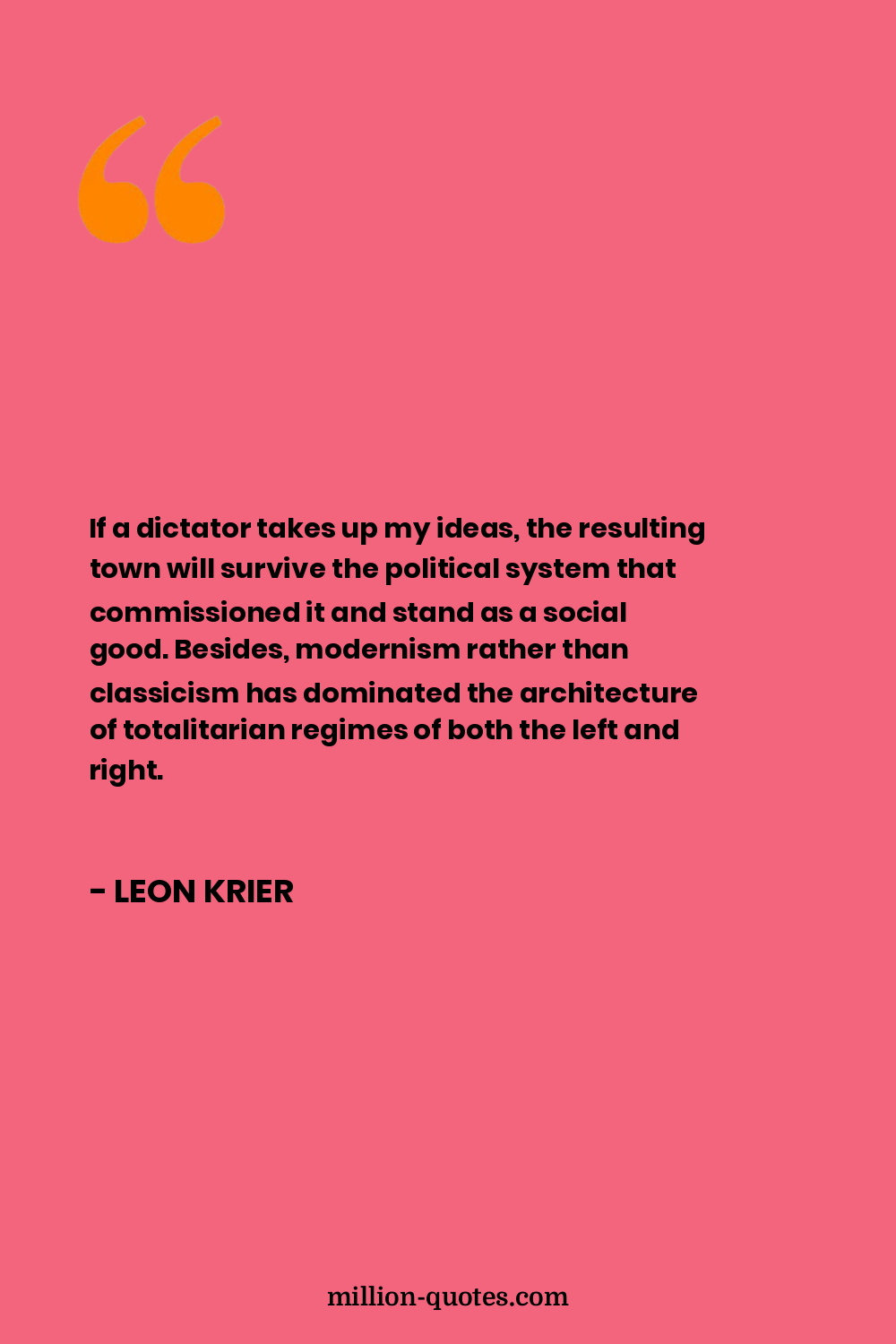 If a dictator takes up my ideas, the resulting town will survive the political system that commissioned it and stand as a social good. Besides, modernism rather than classicism has dominated the architecture of totalitarian regimes of both the left and right.