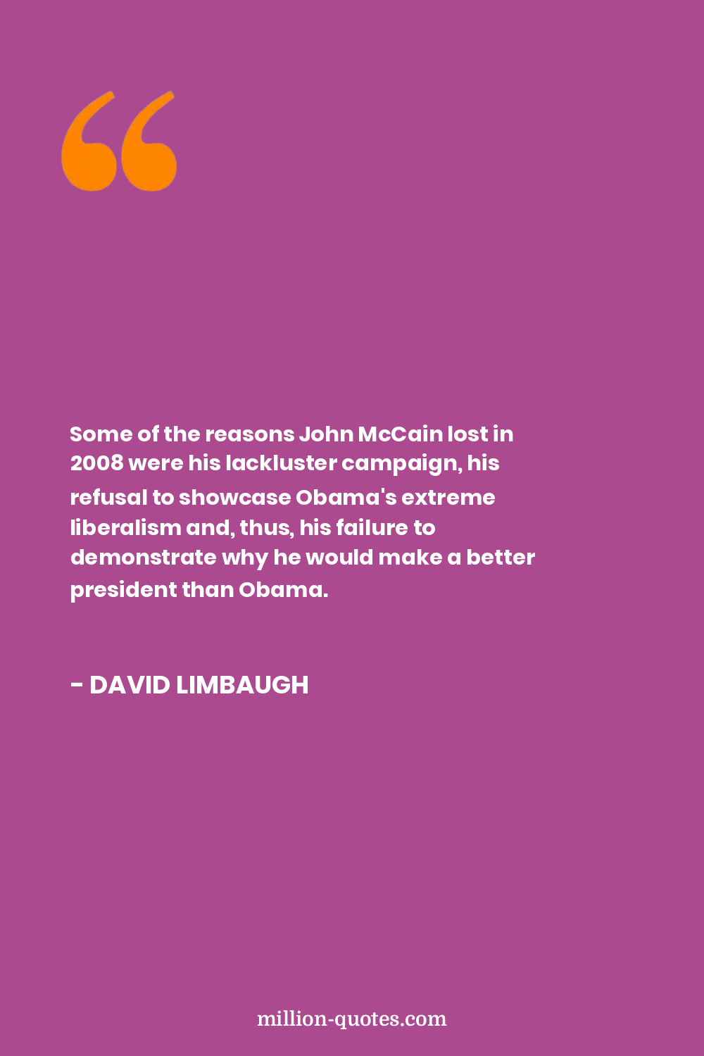 Some of the reasons John McCain lost in 2008 were his lackluster campaign, his refusal to showcase Obama's extreme liberalism and, thus, his failure to demonstrate why he would make a better president than Obama.