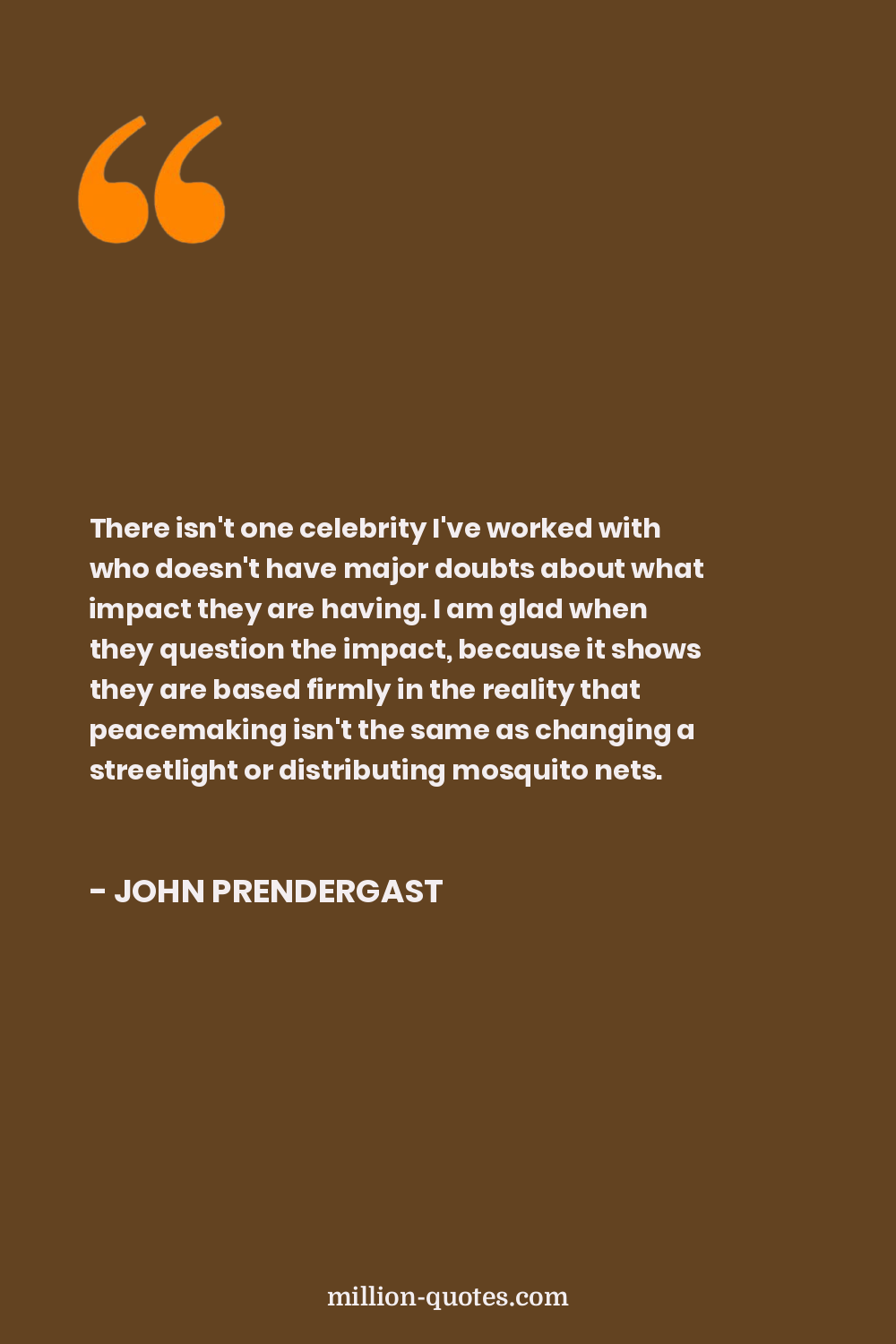 There isn't one celebrity I've worked with who doesn't have major doubts about what impact they are having. I am glad when they question the impact, because it shows they are based firmly in the reality that peacemaking isn't the same as changing a streetlight or distributing mosquito nets.