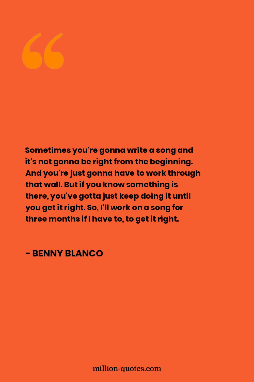Sometimes you're gonna write a song and it's not gonna be right from the beginning. And you're just gonna have to work through that wall. But if you know something is there, you've gotta just keep doing it until you get it right. So, I'll work on a song for three months if I have to, to get it right.
