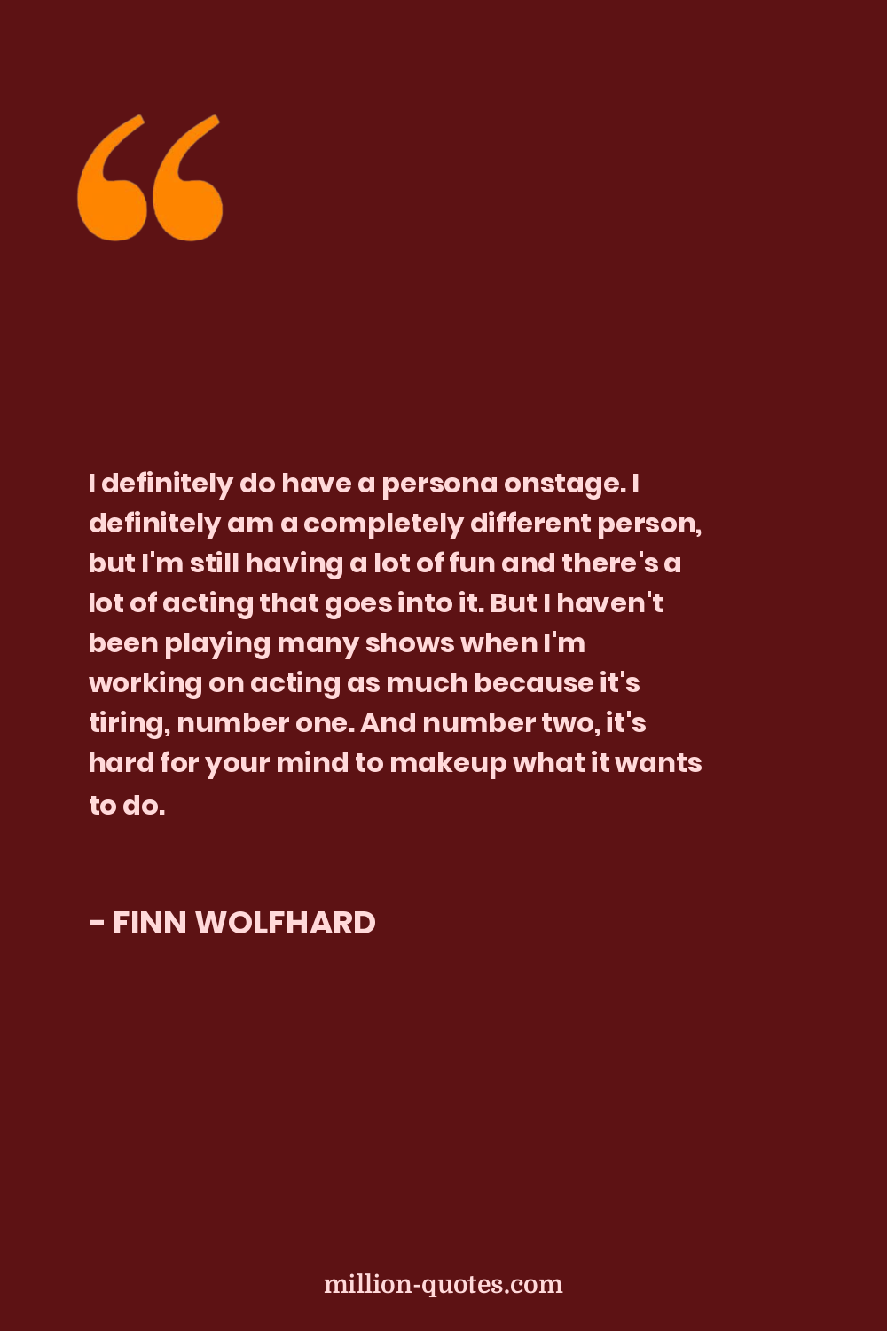 I definitely do have a persona onstage. I definitely am a completely different person, but I'm still having a lot of fun and there's a lot of acting that goes into it. But I haven't been playing many shows when I'm working on acting as much because it's tiring, number one. And number two, it's hard for your mind to makeup what it wants to do.