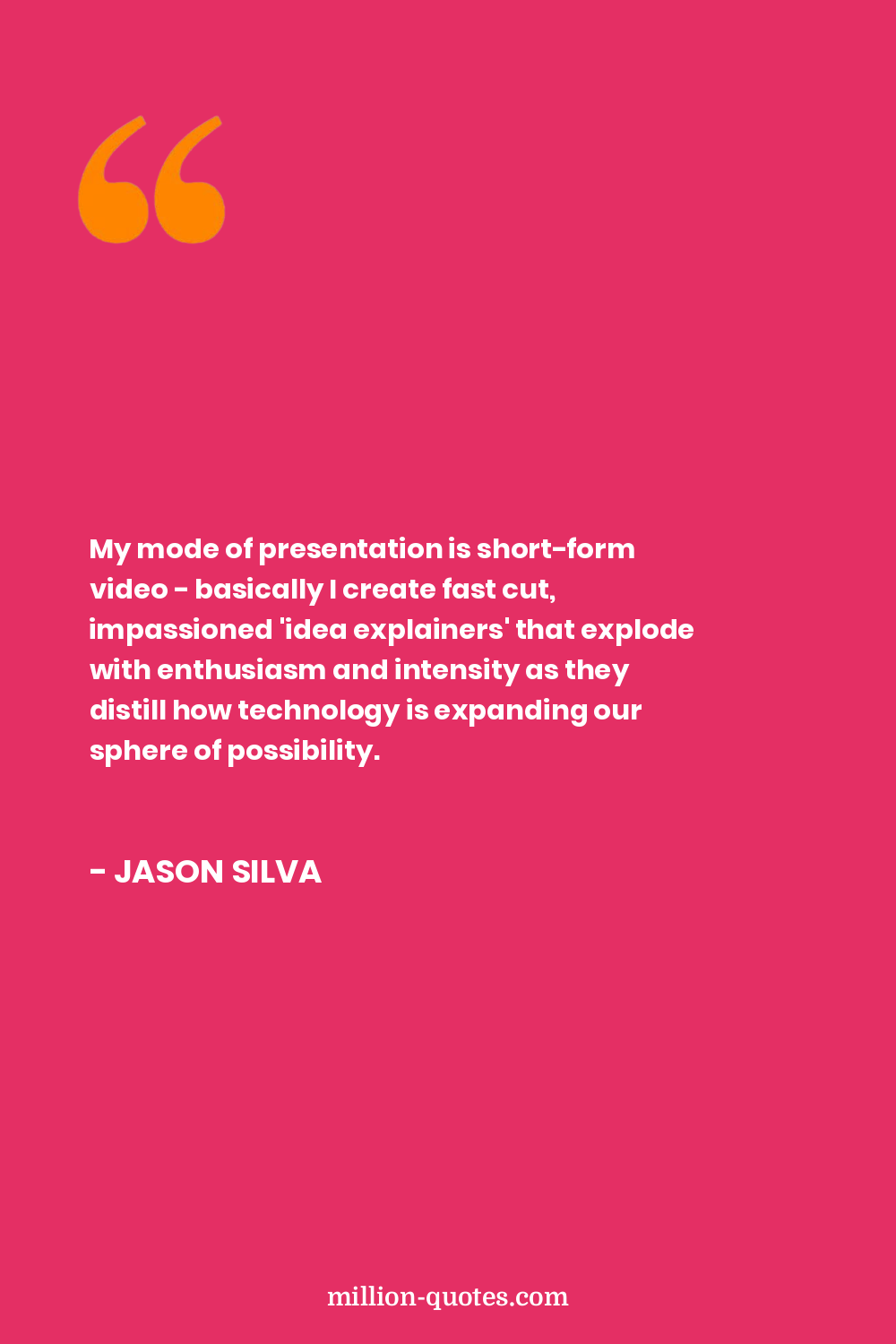 My mode of presentation is short-form video - basically I create fast cut, impassioned 'idea explainers' that explode with enthusiasm and intensity as they distill how technology is expanding our sphere of possibility.