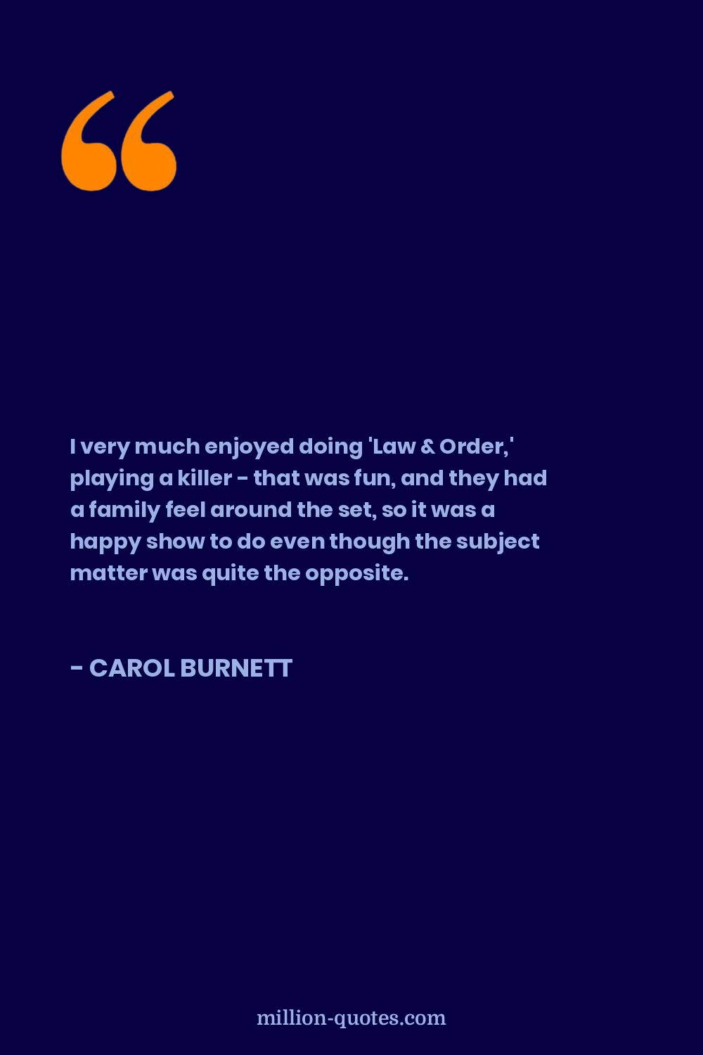 I very much enjoyed doing 'Law & Order,' playing a killer - that was fun, and they had a family feel around the set, so it was a happy show to do even though the subject matter was quite the opposite.