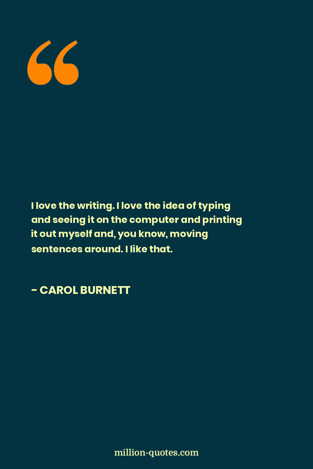 I love the writing. I love the idea of typing and seeing it on the computer and printing it out myself and, you know, moving sentences around. I like that.