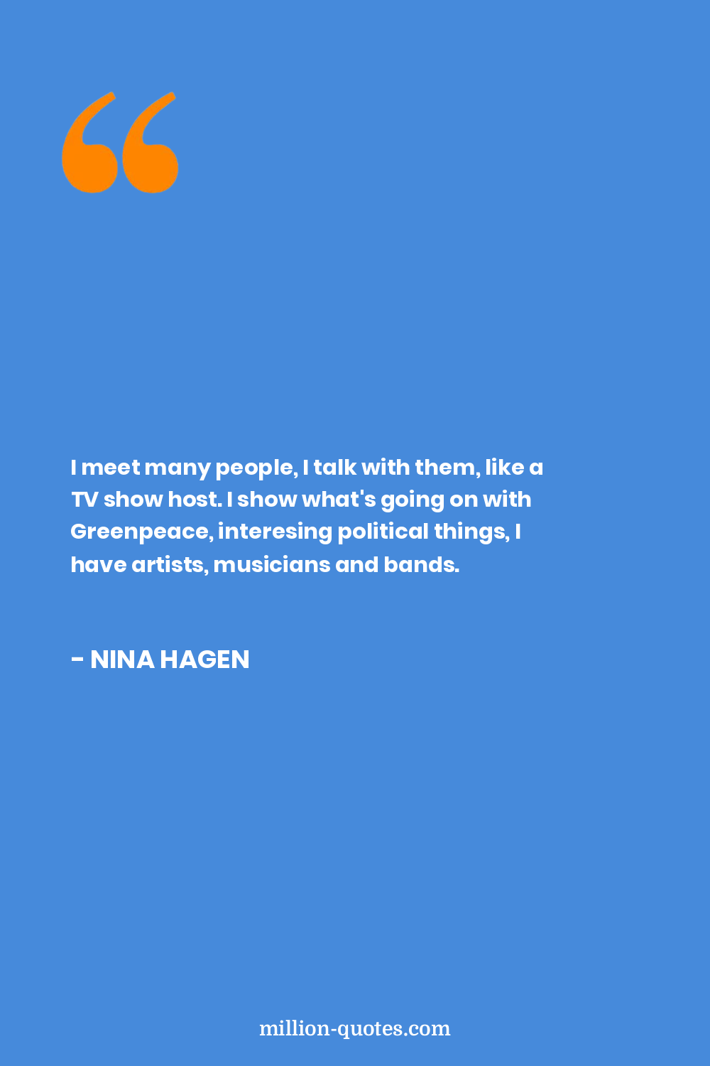 I meet many people, I talk with them, like a TV show host. I show what's going on with Greenpeace, interesing political things, I have artists, musicians and bands.