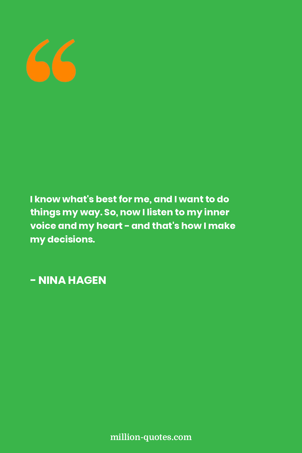 I know what's best for me, and I want to do things my way. So, now I listen to my inner voice and my heart - and that's how I make my decisions.