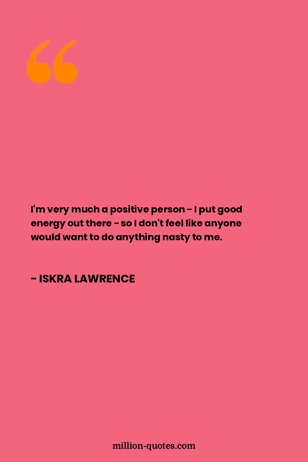 I'm very much a positive person - I put good energy out there - so I don't feel like anyone would want to do anything nasty to me.