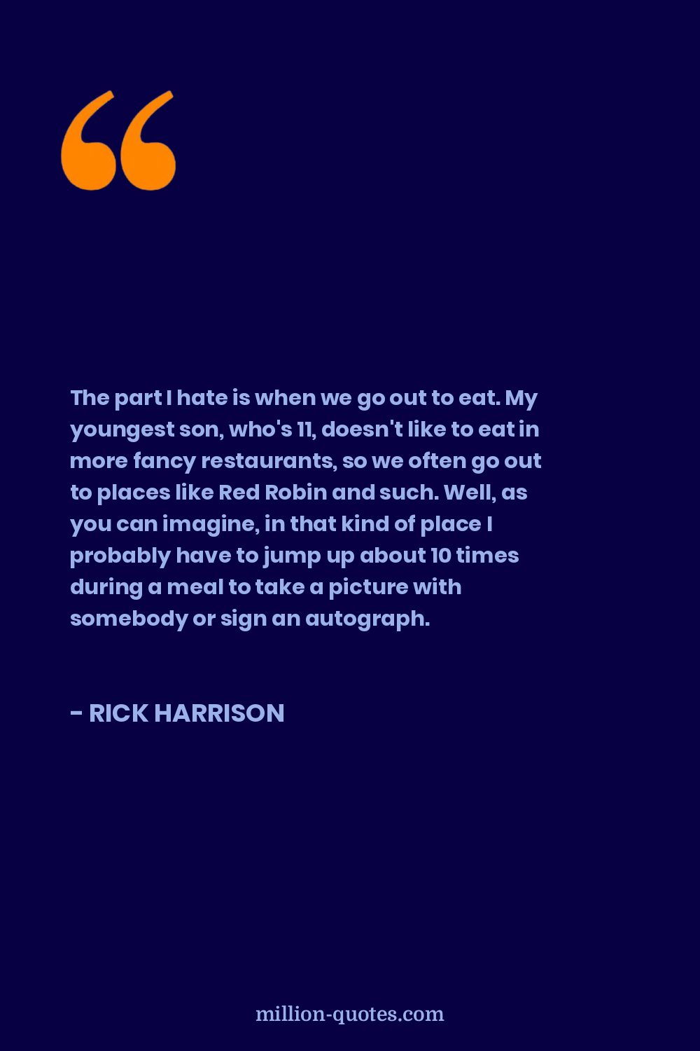 The part I hate is when we go out to eat. My youngest son, who's 11, doesn't like to eat in more fancy restaurants, so we often go out to places like Red Robin and such. Well, as you can imagine, in that kind of place I probably have to jump up about 10 times during a meal to take a picture with somebody or sign an autograph.