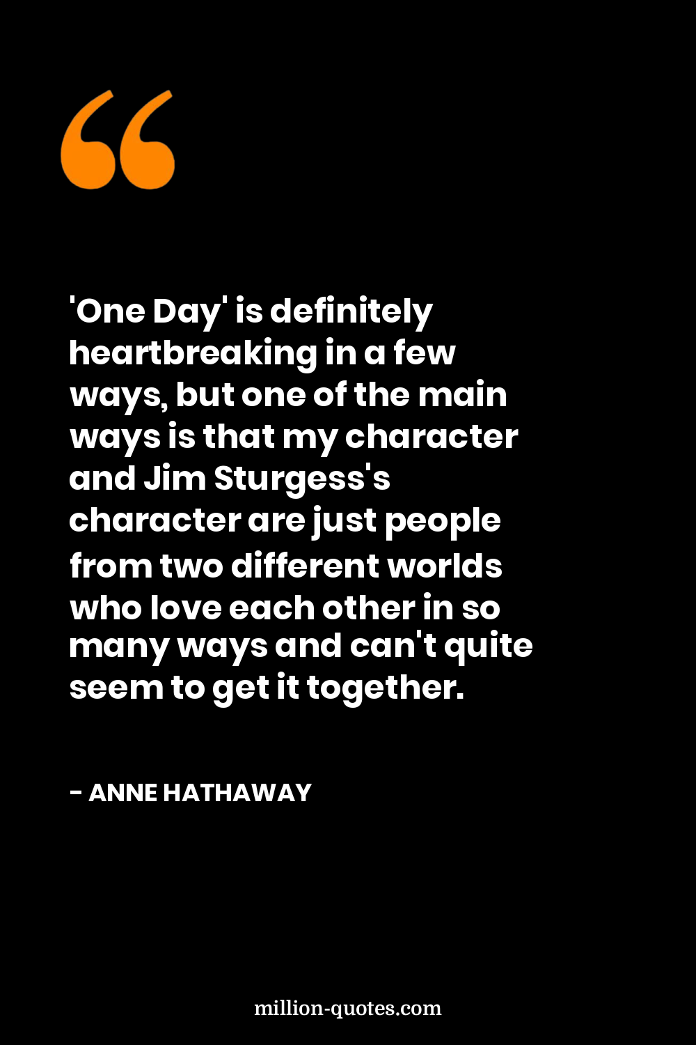 'One Day' is definitely heartbreaking in a few ways, but one of the main ways is that my character and Jim Sturgess's character are just people from two different worlds who love each other in so many ways and can't quite seem to get it together.