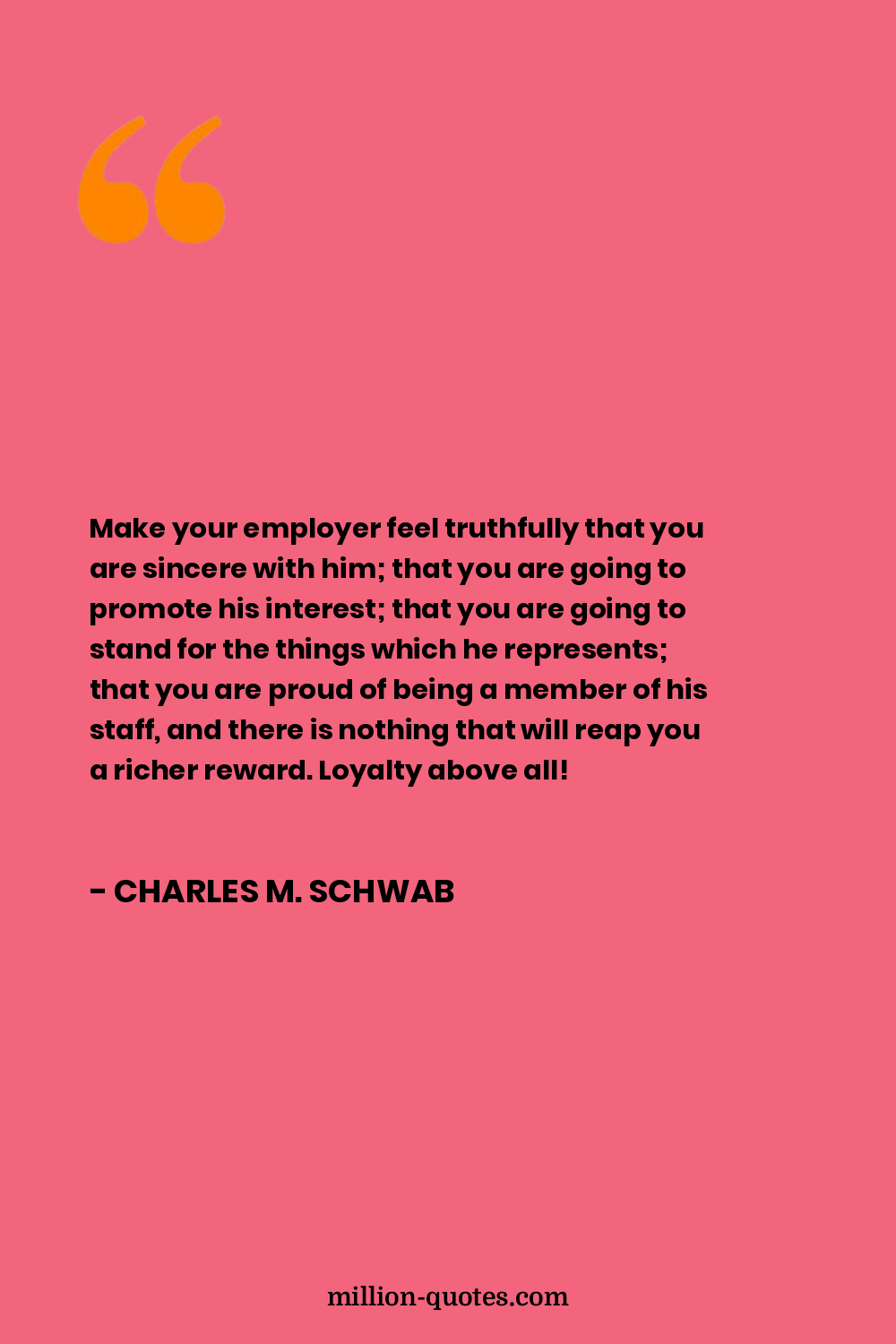 Make your employer feel truthfully that you are sincere with him; that you are going to promote his interest; that you are going to stand for the things which he represents; that you are proud of being a member of his staff, and there is nothing that will reap you a richer reward. Loyalty above all!