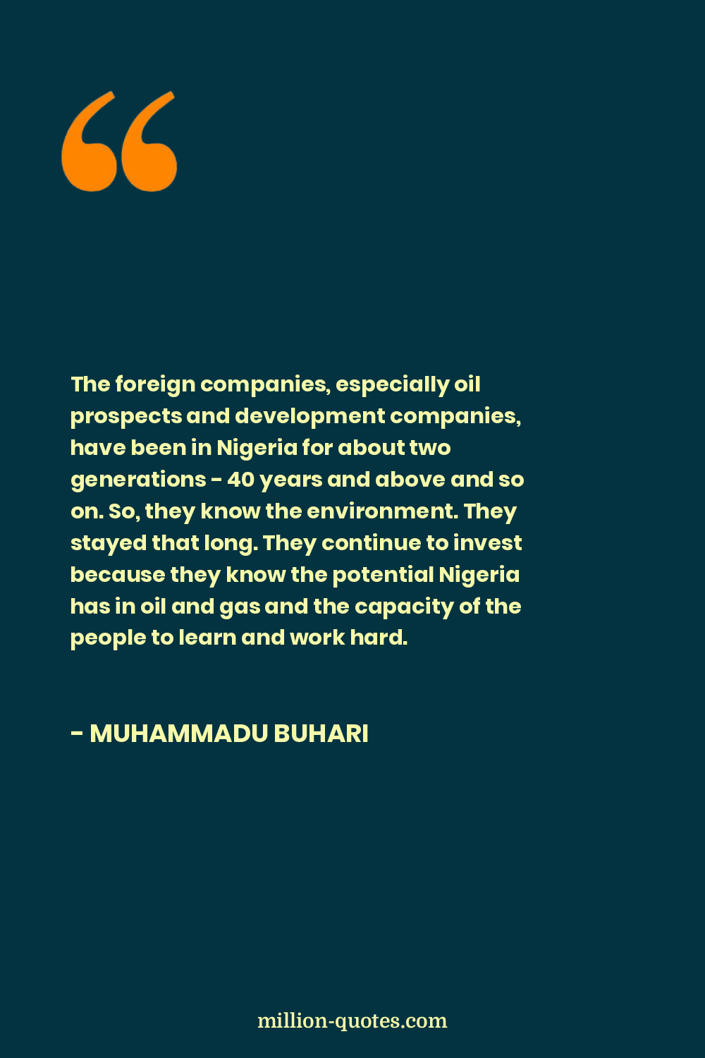 The foreign companies, especially oil prospects and development companies, have been in Nigeria for about two generations - 40 years and above and so on. So, they know the environment. They stayed that long. They continue to invest because they know the potential Nigeria has in oil and gas and the capacity of the people to learn and work hard.