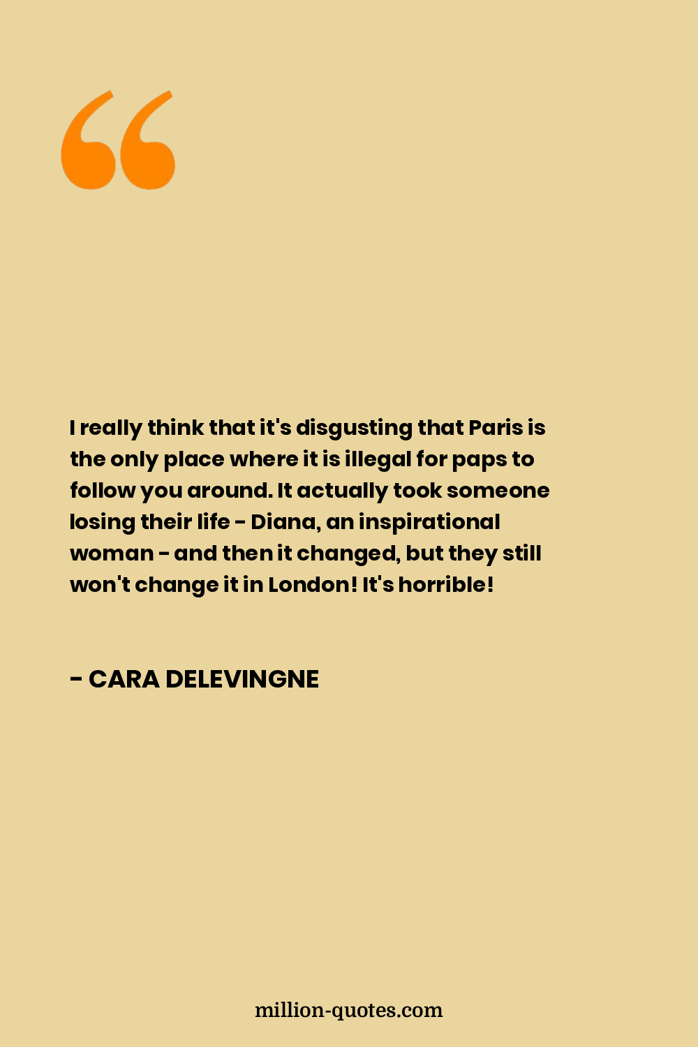 I really think that it's disgusting that Paris is the only place where it is illegal for paps to follow you around. It actually took someone losing their life - Diana, an inspirational woman - and then it changed, but they still won't change it in London! It's horrible!