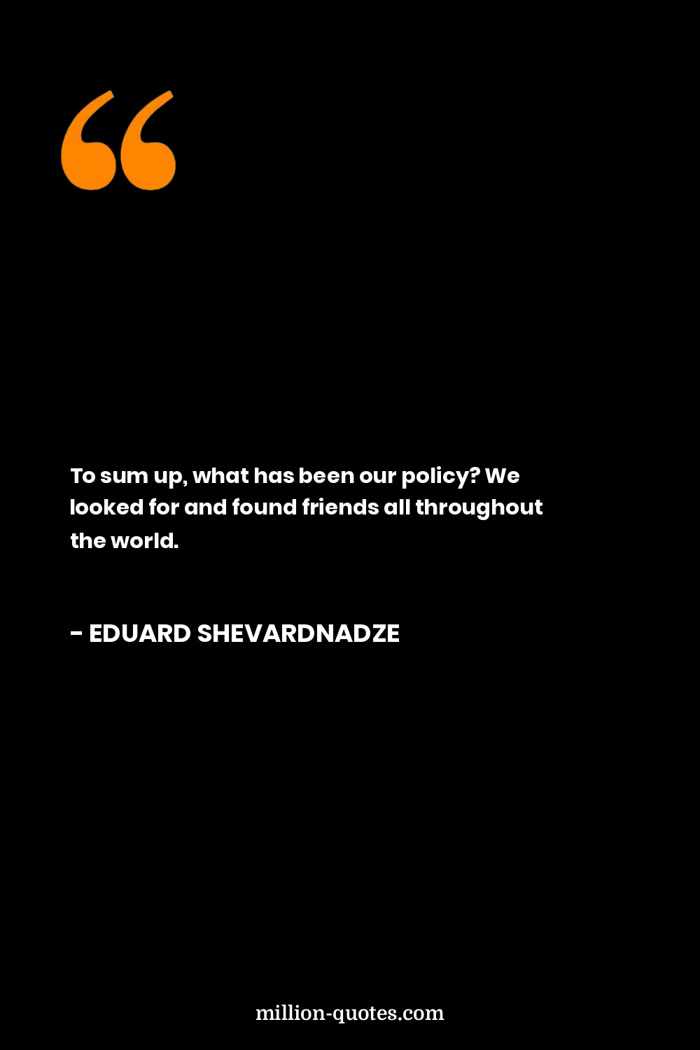 To sum up, what has been our policy? We looked for and found friends all throughout the world.