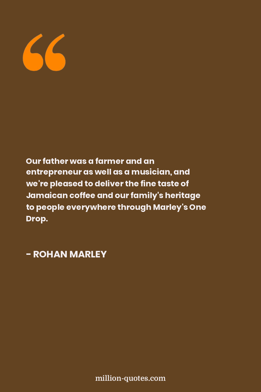 Our father was a farmer and an entrepreneur as well as a musician, and we're pleased to deliver the fine taste of Jamaican coffee and our family's heritage to people everywhere through Marley's One Drop.