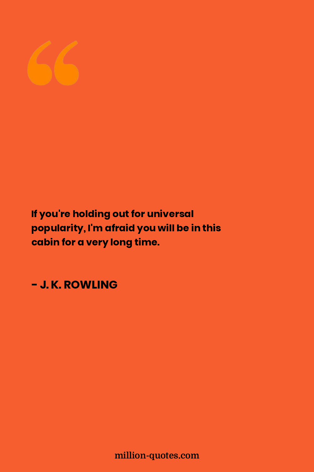If you're holding out for universal popularity, I'm afraid you will be in this cabin for a very long time.