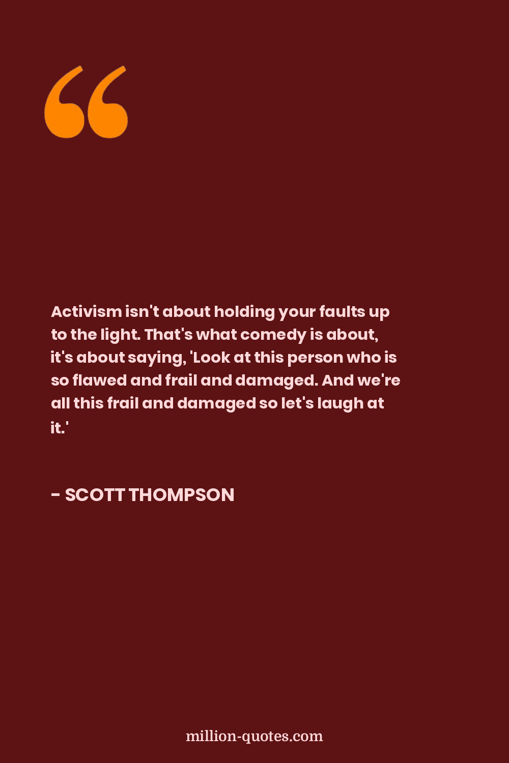 Activism isn't about holding your faults up to the light. That's what comedy is about, it's about saying, 'Look at this person who is so flawed and frail and damaged. And we're all this frail and damaged so let's laugh at it.'