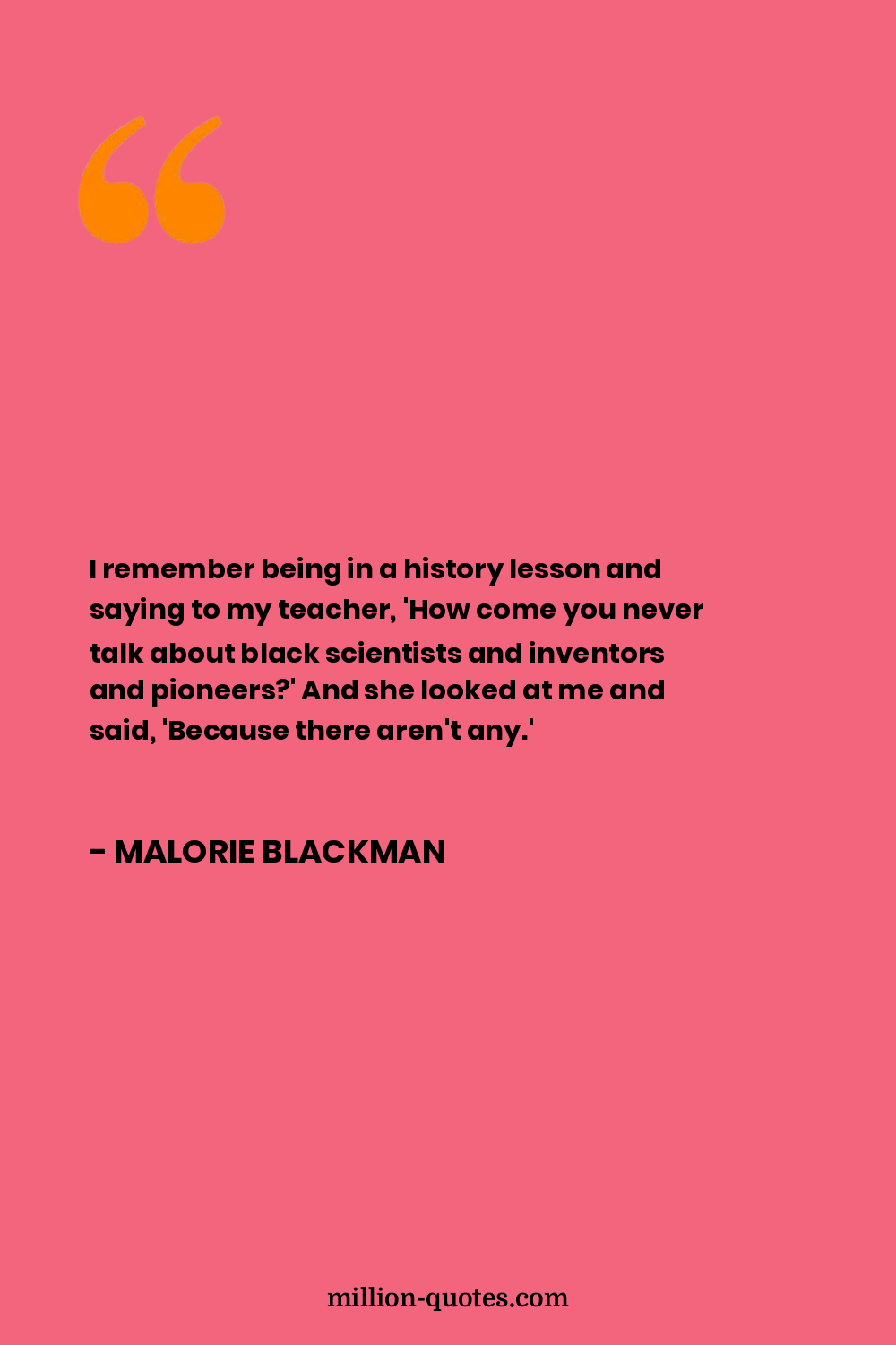 I remember being in a history lesson and saying to my teacher, 'How come you never talk about black scientists and inventors and pioneers?' And she looked at me and said, 'Because there aren't any.'