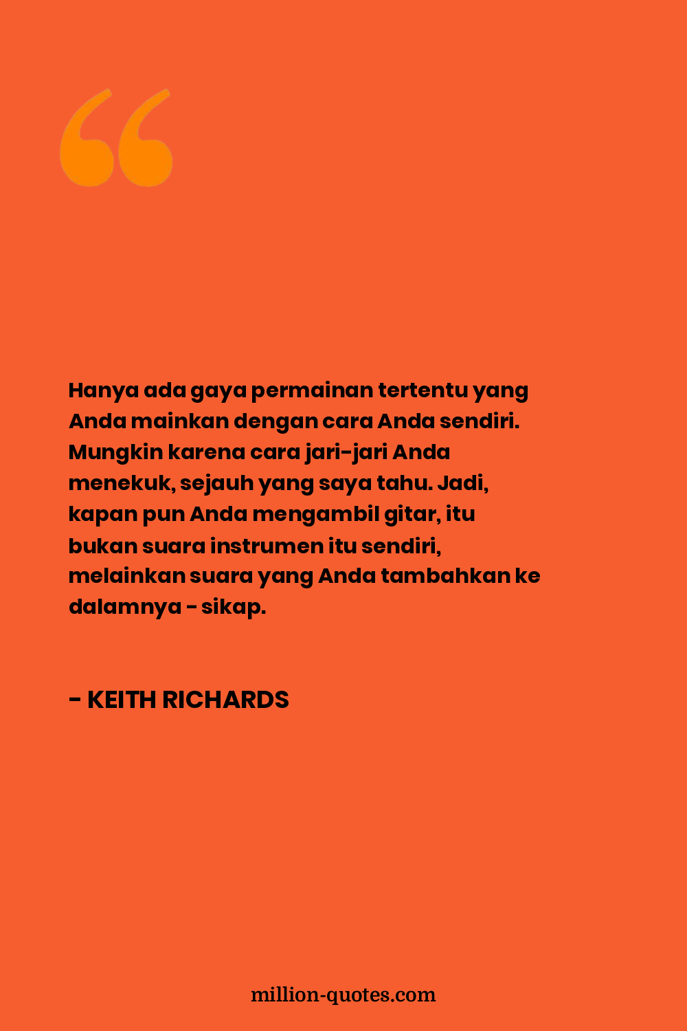 Hanya ada gaya permainan tertentu yang Anda mainkan dengan cara Anda sendiri. Mungkin karena cara jari-jari Anda menekuk, sejauh yang saya tahu. Jadi, kapan pun Anda mengambil gitar, itu bukan suara instrumen itu sendiri, melainkan suara yang Anda tambahkan ke dalamnya - sikap.