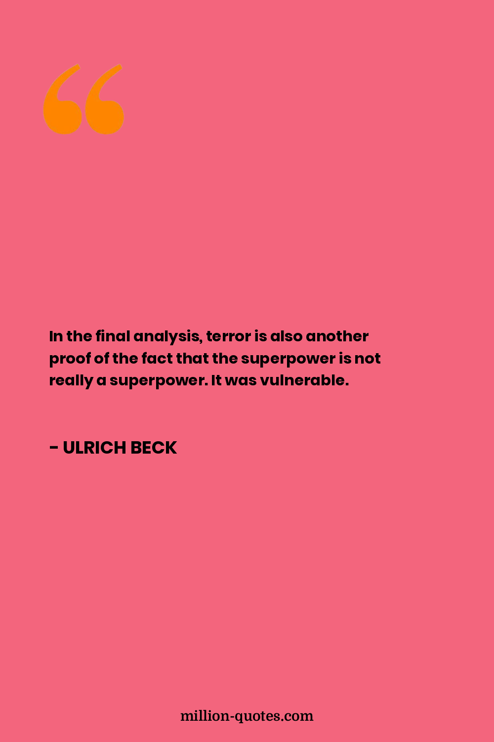 Neither science, nor the politics in power, nor the mass media, nor business, nor the law nor even the military are in a position to define or control risks rationally.