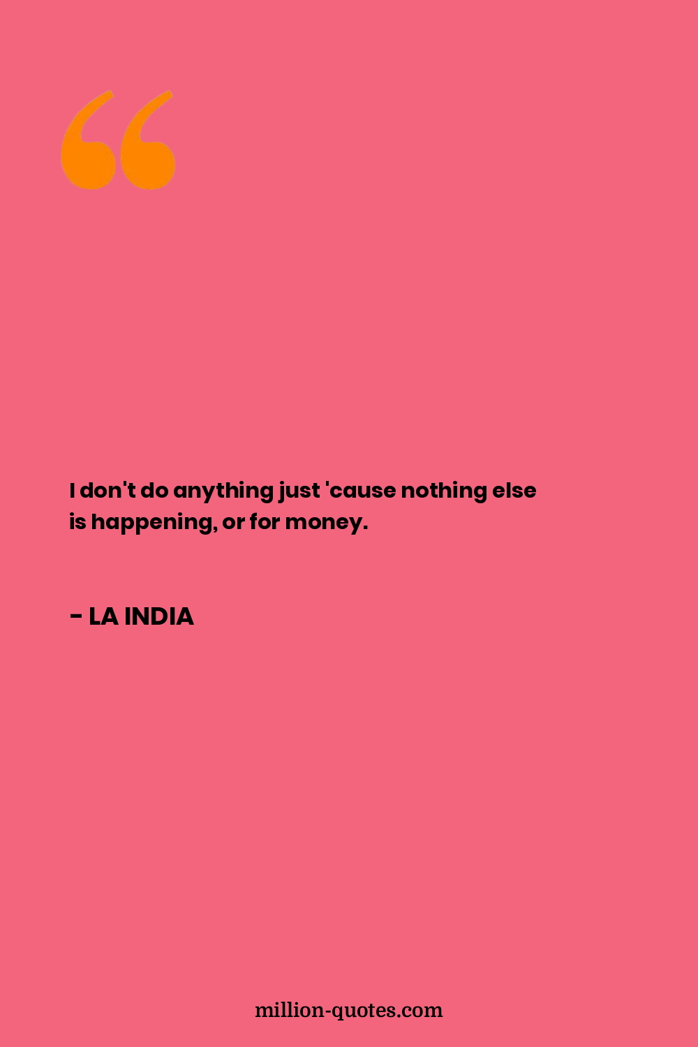 I don't do anything just 'cause nothing else is happening, or for money.