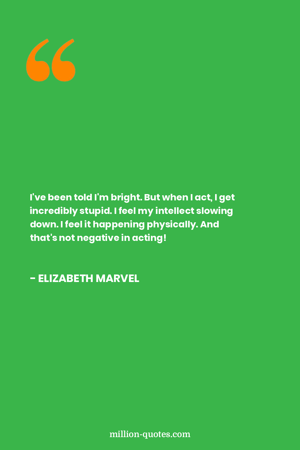 I've been told I'm bright. But when I act, I get incredibly stupid. I feel my intellect slowing down. I feel it happening physically. And that's not negative in acting!