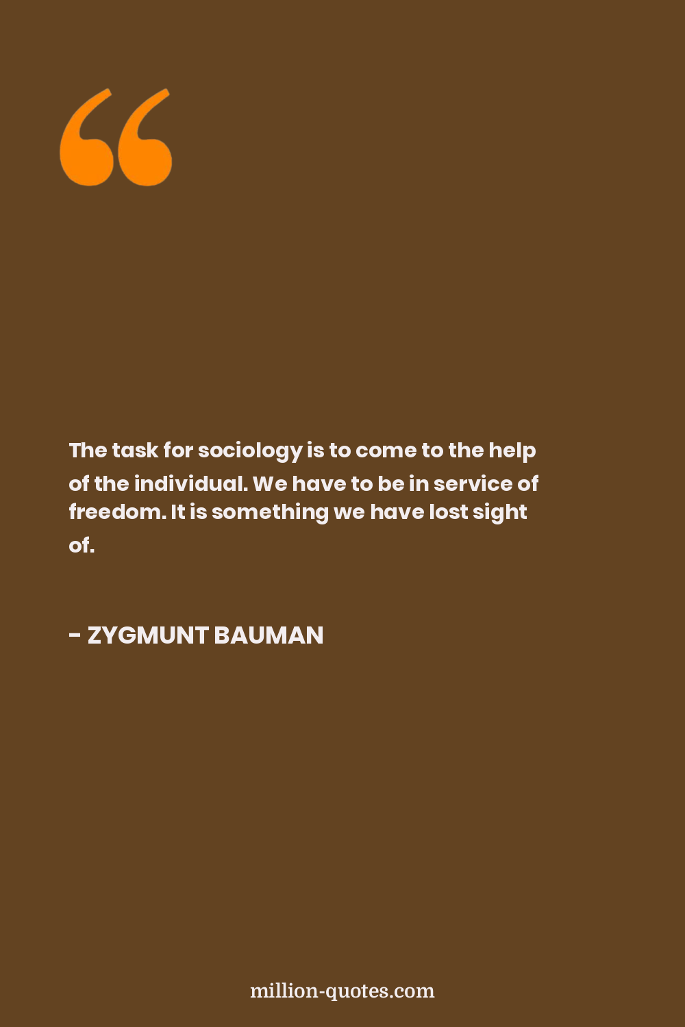 The task for sociology is to come to the help of the individual. We have to be in service of freedom. It is something we have lost sight of.