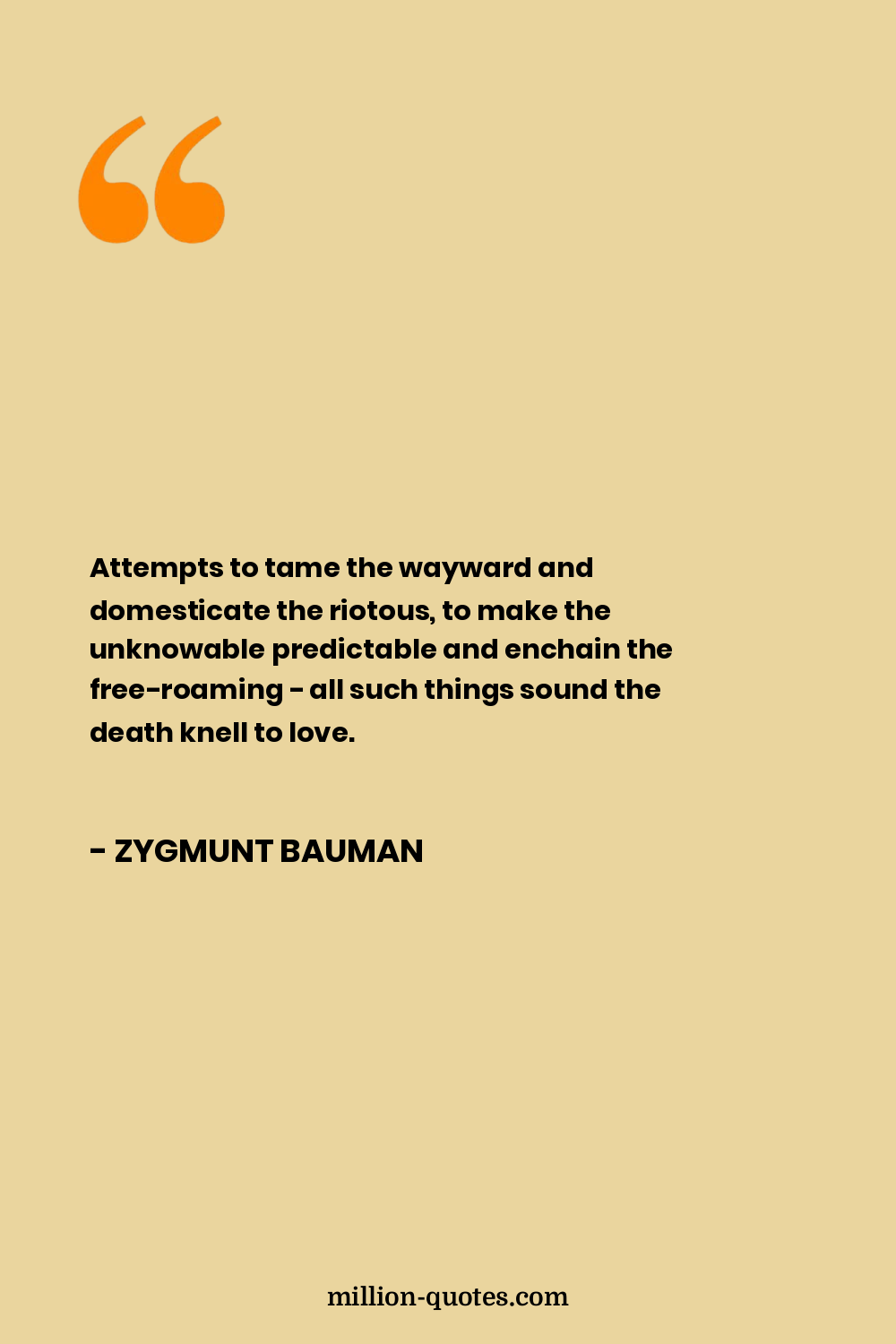 Attempts to tame the wayward and domesticate the riotous, to make the unknowable predictable and enchain the free-roaming - all such things sound the death knell to love.
