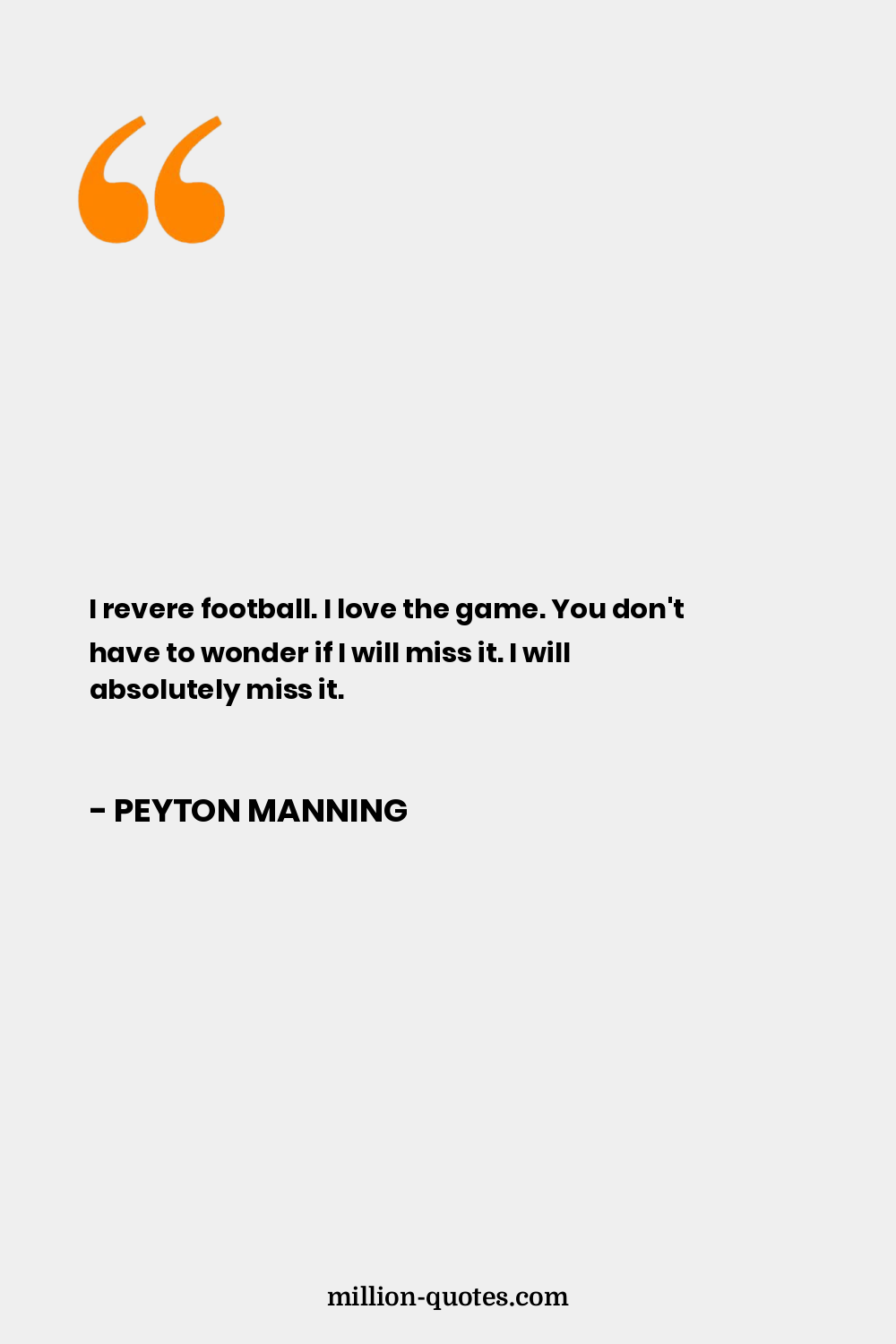I revere football. I love the game. You don't have to wonder if I will miss it. I will absolutely miss it.