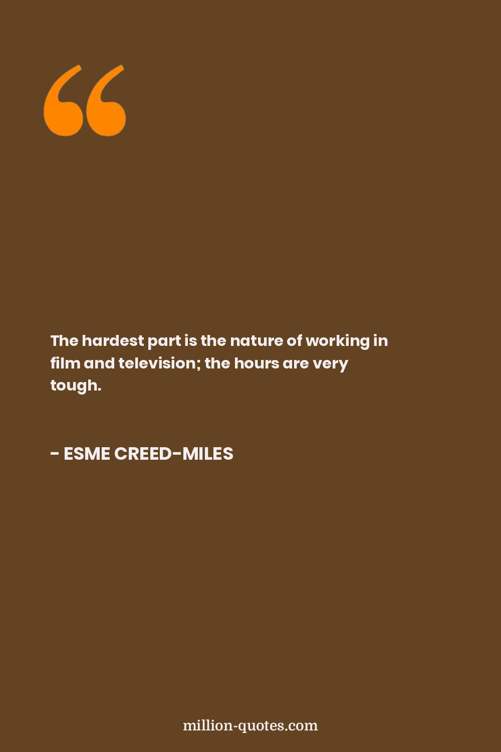 The hardest part is the nature of working in film and television; the hours are very tough.