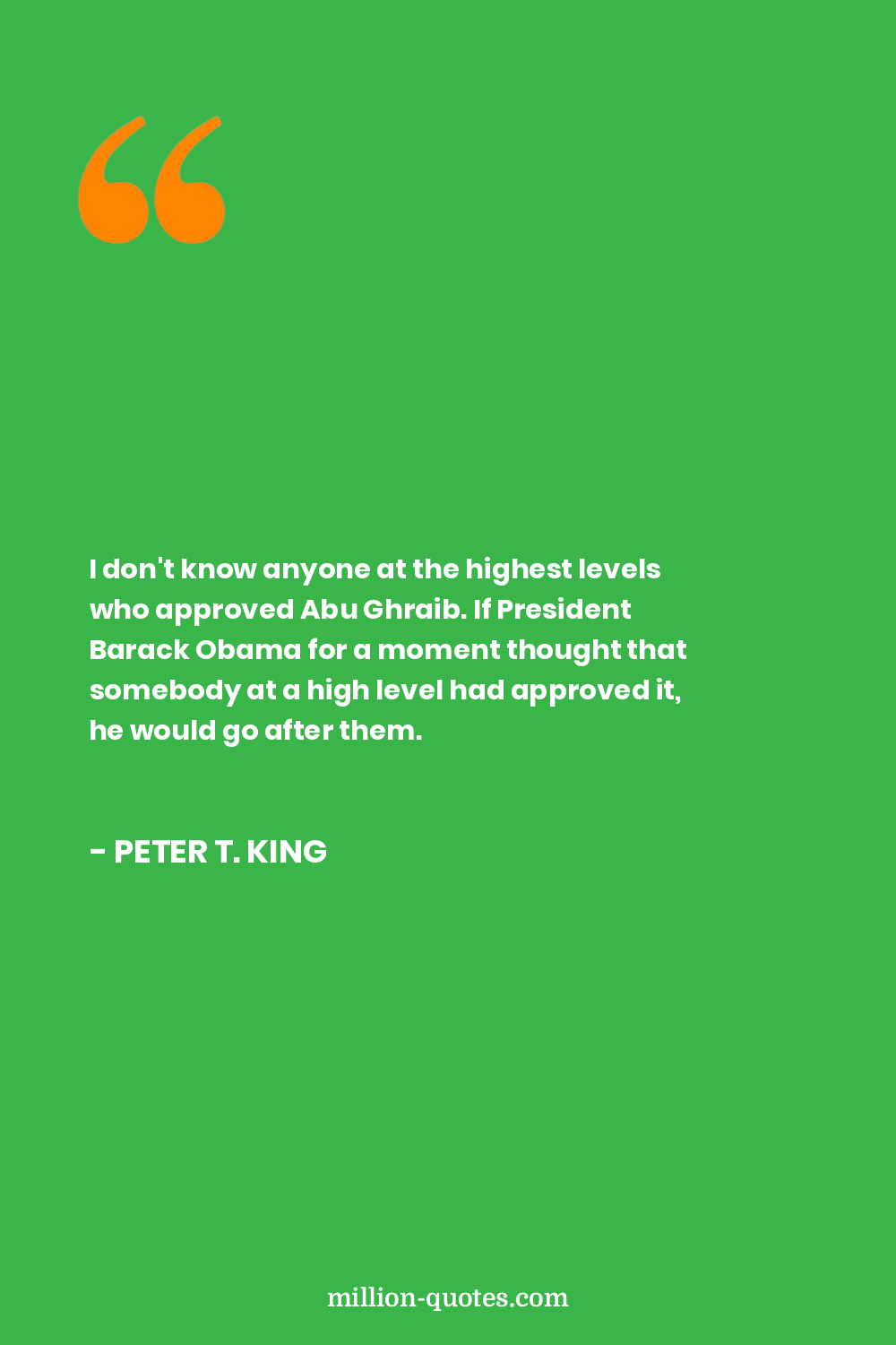 I don't know anyone at the highest levels who approved Abu Ghraib. If President Barack Obama for a moment thought that somebody at a high level had approved it, he would go after them.