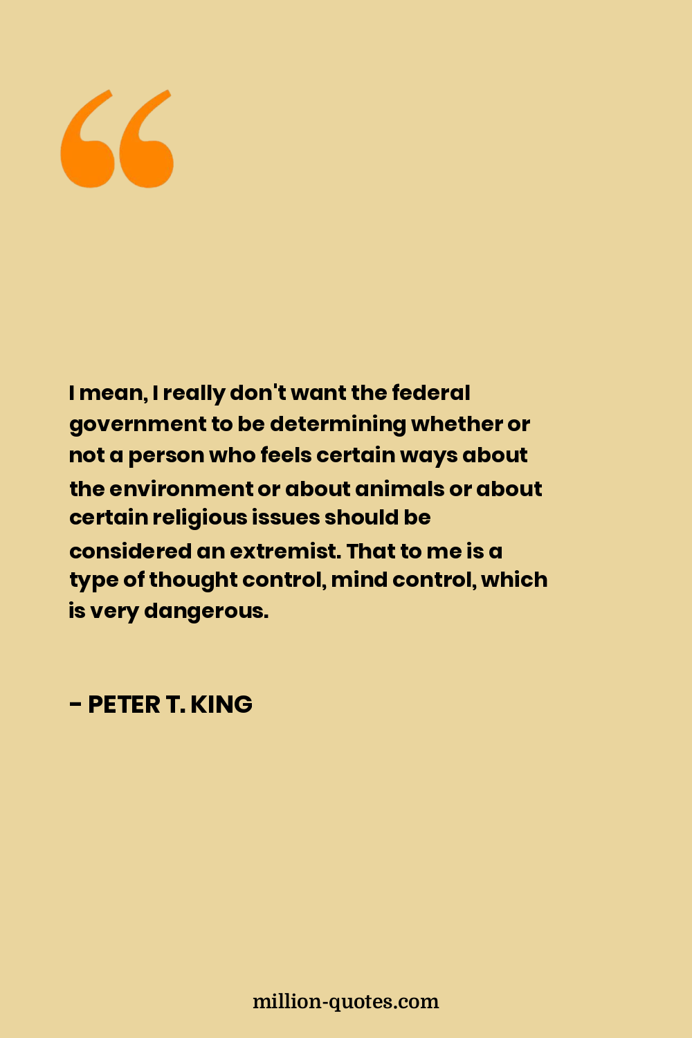 I mean, I really don't want the federal government to be determining whether or not a person who feels certain ways about the environment or about animals or about certain religious issues should be considered an extremist. That to me is a type of thought control, mind control, which is very dangerous.