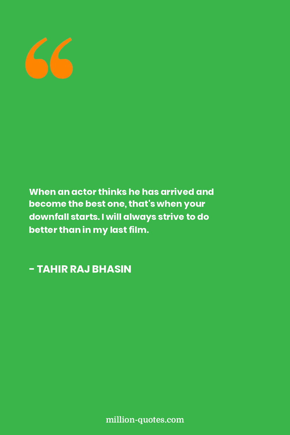 When an actor thinks he has arrived and become the best one, that's when your downfall starts. I will always strive to do better than in my last film.