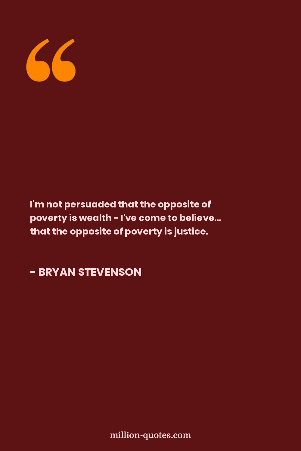 I'm not persuaded that the opposite of poverty is wealth - I've come to believe... that the opposite of poverty is justice.