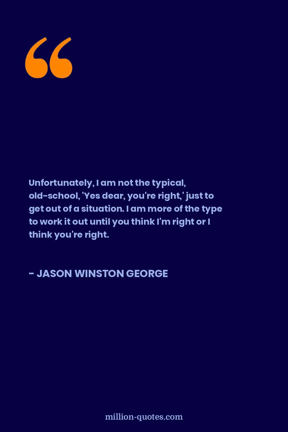 Unfortunately, I am not the typical, old-school, 'Yes dear, you're right,' just to get out of a situation. I am more of the type to work it out until you think I'm right or I think you're right.