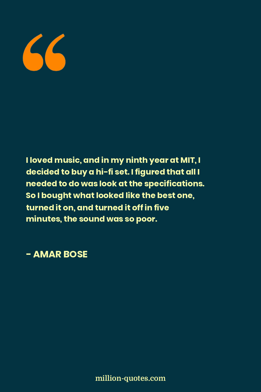 I loved music, and in my ninth year at MIT, I decided to buy a hi-fi set. I figured that all I needed to do was look at the specifications. So I bought what looked like the best one, turned it on, and turned it off in five minutes, the sound was so poor.