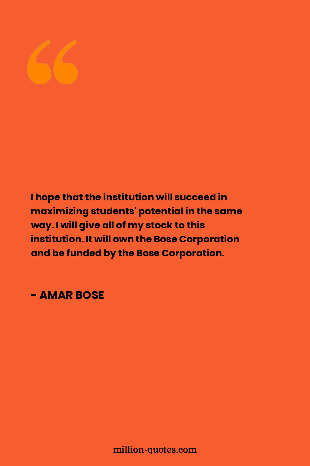 I hope that the institution will succeed in maximizing students' potential in the same way. I will give all of my stock to this institution. It will own the Bose Corporation and be funded by the Bose Corporation.