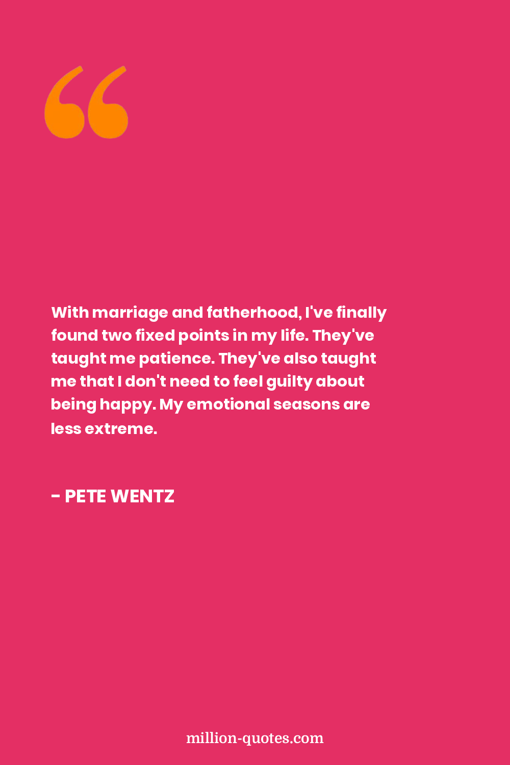 With marriage and fatherhood, I've finally found two fixed points in my life. They've taught me patience. They've also taught me that I don't need to feel guilty about being happy. My emotional seasons are less extreme.